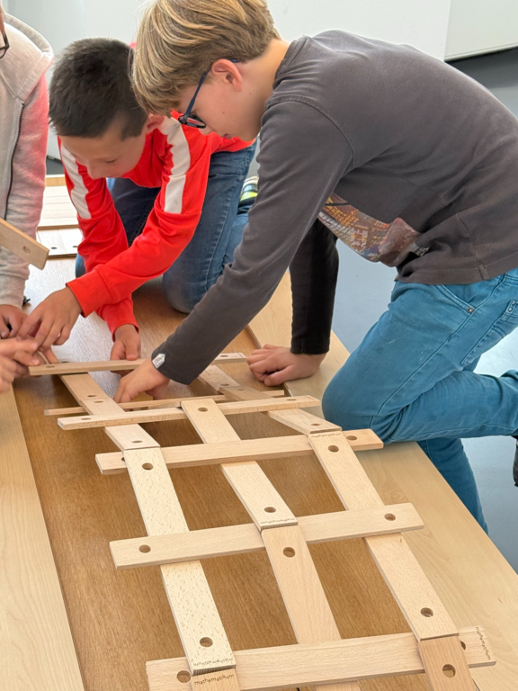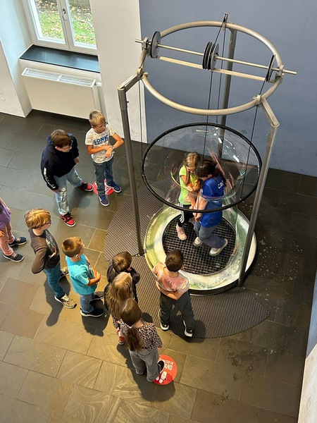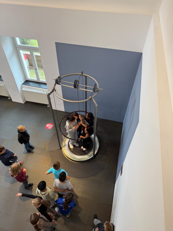 Am 10.9.25 traf sich der Jahrgang 4 bereits um 7.10Uhr auf dem Schulhof! Warum? Weil sie sich auf den Weg nach Gießen, zum Mathematikum machten. Nach der Fahrt mit Straßenbahn und Zug gingen die Kinder- nach einer kurzen Einführung- direkt auf Entdeckungstour. Und zu entdecken gibt es so einiges im Mitmachmuseum. Die Zahl Pi, die Leonardobrücke, optische Täuschungen, Zahlen im Alltag und zahlreiche mathematische Puzzle und Miniexperimente. Da war für jeden was dabei.