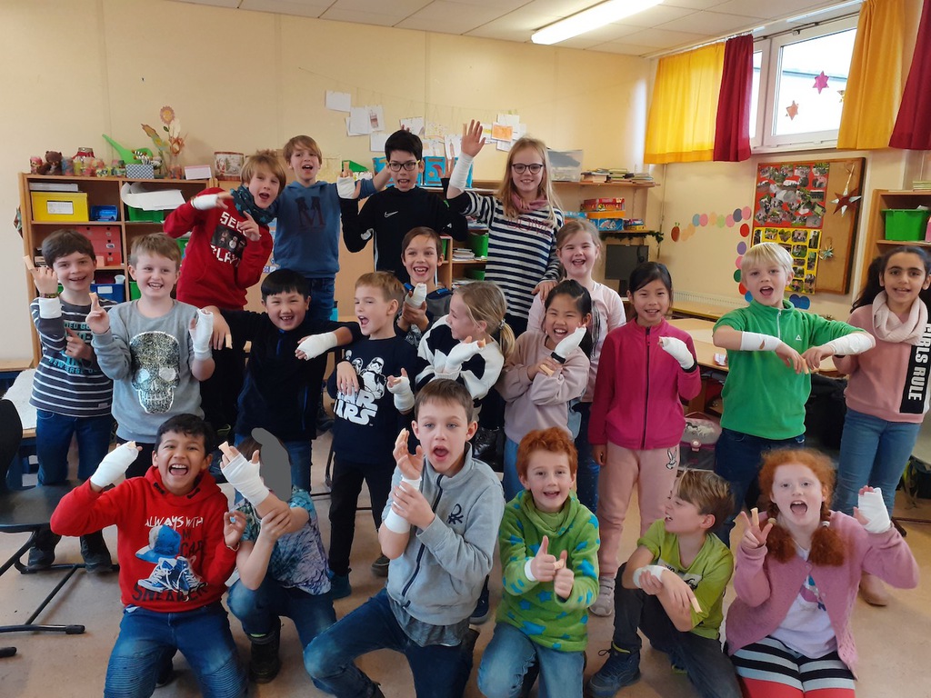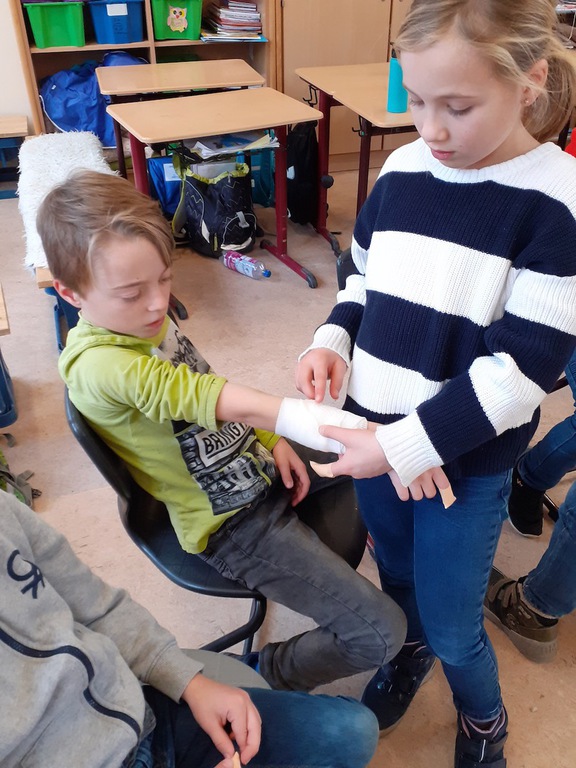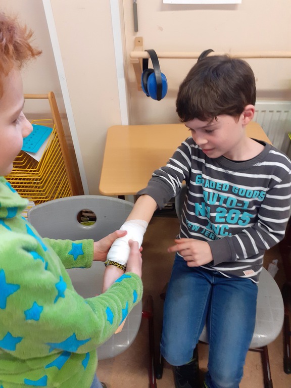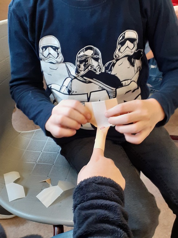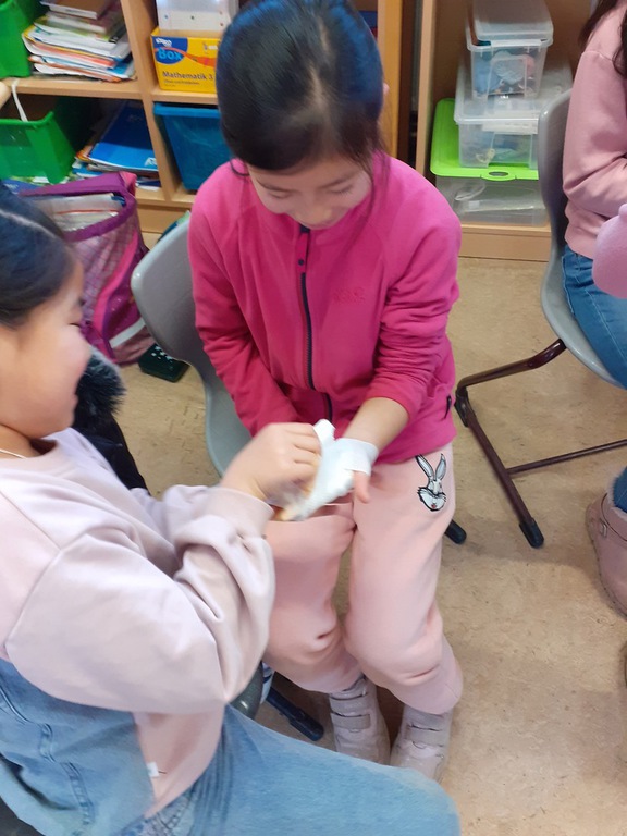 Mit viel Spaß wurden Finger, Hände und Arme "verarztet".
