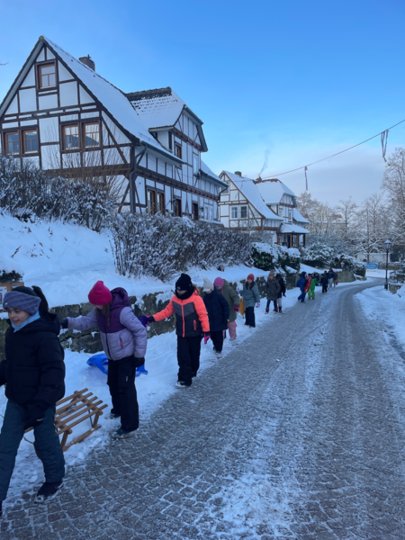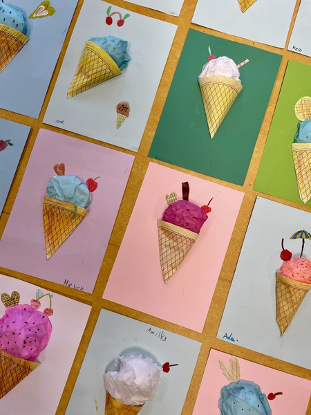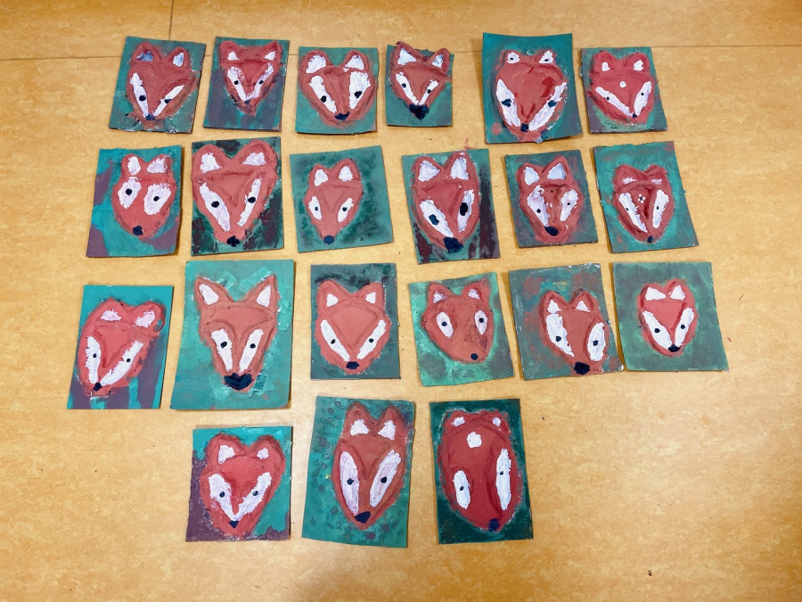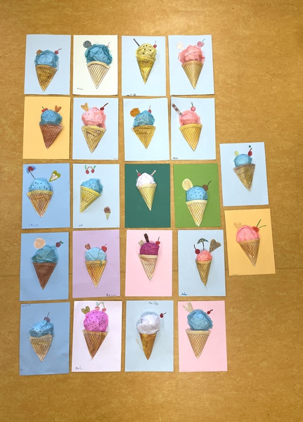 Wir haben im Kunstunterricht diese tollen Schneemänner gemalt. (Januar 2023)
