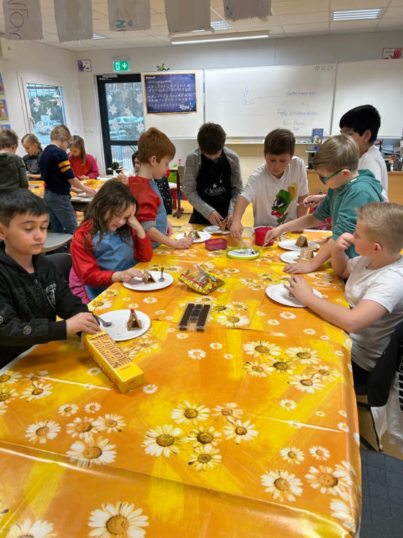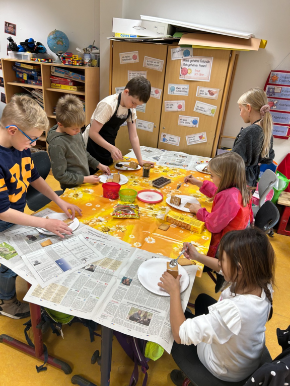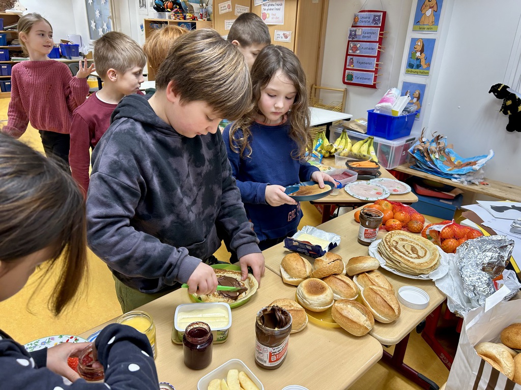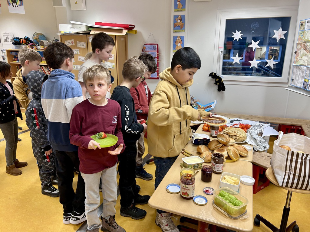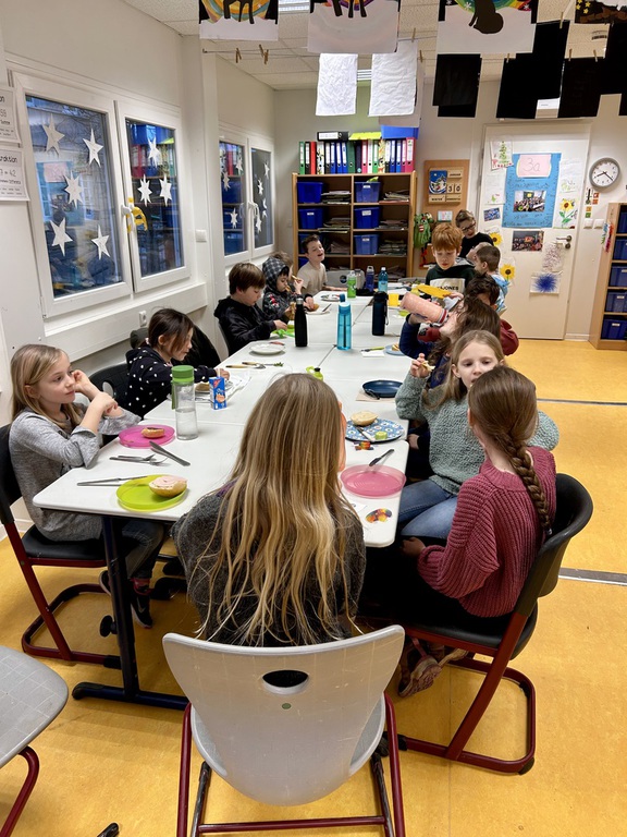 Am Tag der Halbjahreszeugnisse haben wir es uns, mit einem gemeinsamen Frühstück und Spielen, nett gemacht! (Februar 25)
