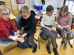 Im Erste Hilfe Kurs haben wir geübt, wie man einen Notruf absetzt. Außerdem haben wir uns gegenseitig Verbände angelegt. (März 25)